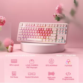 Pink 87-Key Mechanical Gaming Keyboard with RGB, Wrist Rest & Wireless